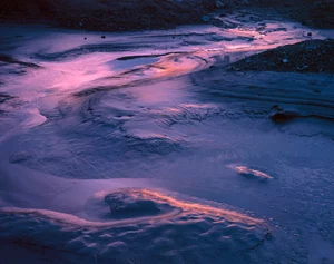Leaving the bizarre world of the Matanuska Glacier at ten in the evening of the same day that resulted in Glacial ice, Alaska, this bit of Jovian landscape caught my eye. A few minutes earlier my companions and I had seen fresh looking grizzly tracks in the mud very nearby. I was glad to return to the shelter of our vehicle and a late supper.