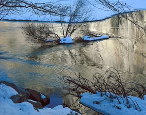 I am reminded by this photograph of a little gray bird I once saw diving most heartily into the 32-degree water of the snowlined Merced River, in winter, here in Yosemite Valley. It was an ouzel, also known as a water ouzel or a dipper. This amazing little submarine of a bird is widely distributed throughout mountainous and other regions of the United States, Europe and Asia and exploits a most curious niche. It eats aquatic insects, which it picks off the bottom of streams, in which it "flies" or walks with impunity. This slate-colored, short-tailed wonder is known as a dipper, because, as it stands on rocks beside the water, it turns its upper body from side to side and does a little curtsy with each turn. It nests as close to the water as it can and flies very rapidly up and down its home creek barely above the surface of the water, as if it couldn't bear to ever be more than a few inches from its beloved H20.