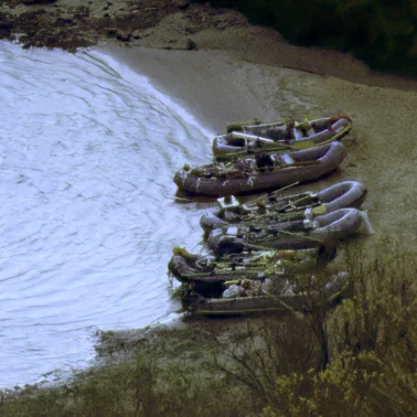 The fourth morning of a twenty-one day raft trip in March and April, through all 270 miles of the greatest of canyons in the Earth found me here, having climbed about 450 vertical feet from our campsite, visible below. Note the six rafts, mostly over 16 feet long. The bushes beyond are tamarisk trees about 20 feet high. Up to three thousand two hundred vertical feet of rock is visible, and the center of the hazy canyon wall in the distance is no less than four miles from where I stood.