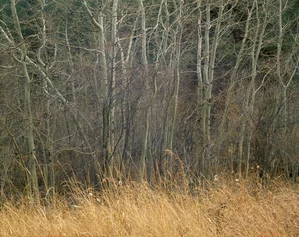 In the cool, brooding of November, in the rockies near Boulder, I found just the bit of wildness I was hoping to see. I had arrived too late for autumn leaves and had to hope for evocative bare trees. As is the case with most pictures, this one only became right, during my days of making additive Cibachromes, as a result of tonal adjustments which I made in the lab. For example, the grass was darkened relative to everything else. This allowed both the foreground and the background to be rendered as a relatively full range of tones, from dark to light, making a final print more luminous and lifelike. The rendition here is considerably more advanced still, thanks to the great gift of numbers as the medium of control replacing chemicals, which are a far more unruly lot.