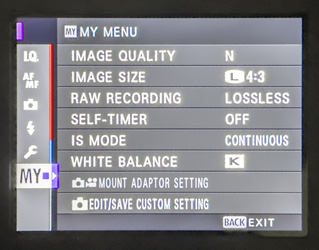 Suppose that you're checking some of the key settings of your Fujifilm GFX 100S by looking at your custom "My Menu" tab in the main menu area of your camera and you see this (this is how mine is set up):