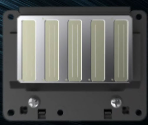 3) "9-Channel Epson MicroPiezo TFP™ Print Head" 360 nozzles in each of the nine, one-inch columns of nozzles! The Thin Film Piezo head can greatly increase the resolution because, dot placement is 10 to 100X more accurate, and it can print twice the dots per pass of all prior generation of print heads. It is a more expensive head, with even more advanced active meniscus control than the MicroPiezo AMC heads in the other new machines. The improved AMC is what yields the improved placement accuracy, elimination of satellites, and the consistency of droplet size.