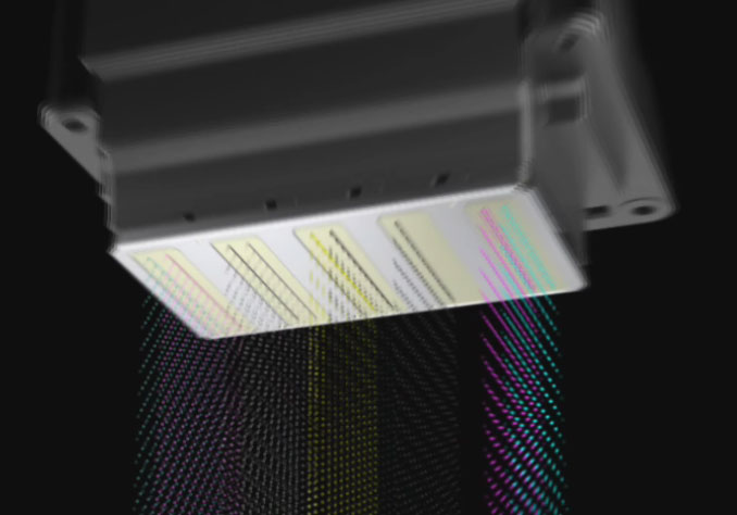 Here are some of Epson's photos and illustrations that show views of the TFP head surface, showing the layout of the nine columns of nozzles: